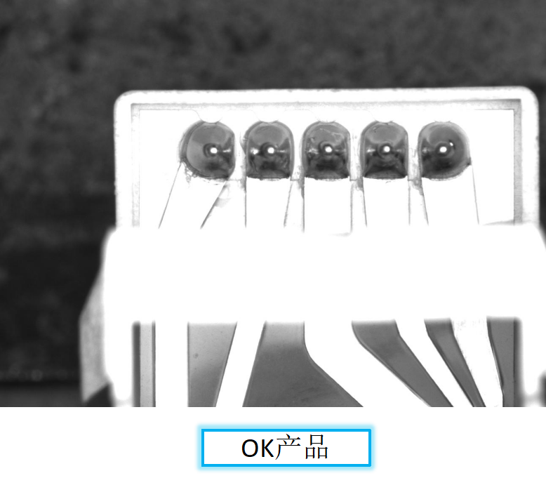 本方案采用兩個(gè)固定相機(jī),一個(gè)拍攝正面、一個(gè)拍攝側(cè)面,以目前圖像效果來(lái)看,可以檢測(cè)缺焊、連焊等不良。