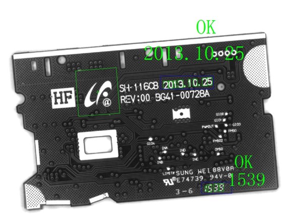 系統(tǒng)采用光學(xué)字符驗(yàn)證技術(shù),通過(guò)工業(yè)相機(jī)捕獲PCB元件表面的字符信息(如型號(hào)、批次號(hào)),利用圖像處理算法進(jìn)行實(shí)時(shí)比對(duì)。使用康耐德自主研發(fā)的視覺(jué)平臺(tái),可快速識(shí)別字符內(nèi)容,確保與預(yù)設(shè)信息一致,避免因字符錯(cuò)誤導(dǎo)致的混料。